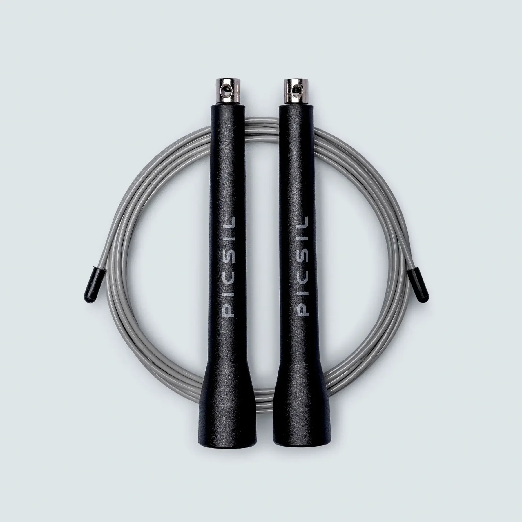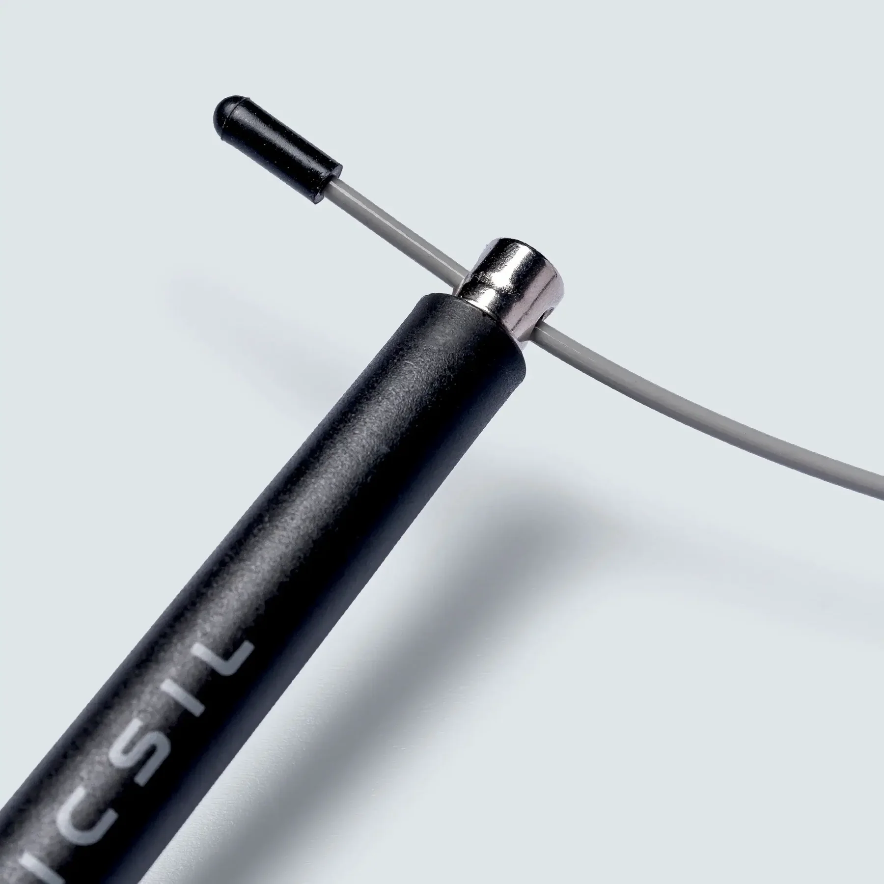 Cuerda de velocidad con cable de acero recubierto en PVC y mangos de ABS ultraligero con sistema giratorio de alta precisión.